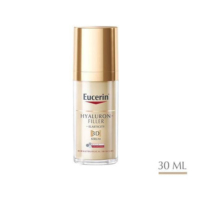 Eucerin Hyaluron-Filler + Elasticity 3D Serum is clinically and dermatologically proven to reduce age spots, visibly plump deep wrinkles, improve elasticity and leave skin looking and feeling radiant and rejuvenated.