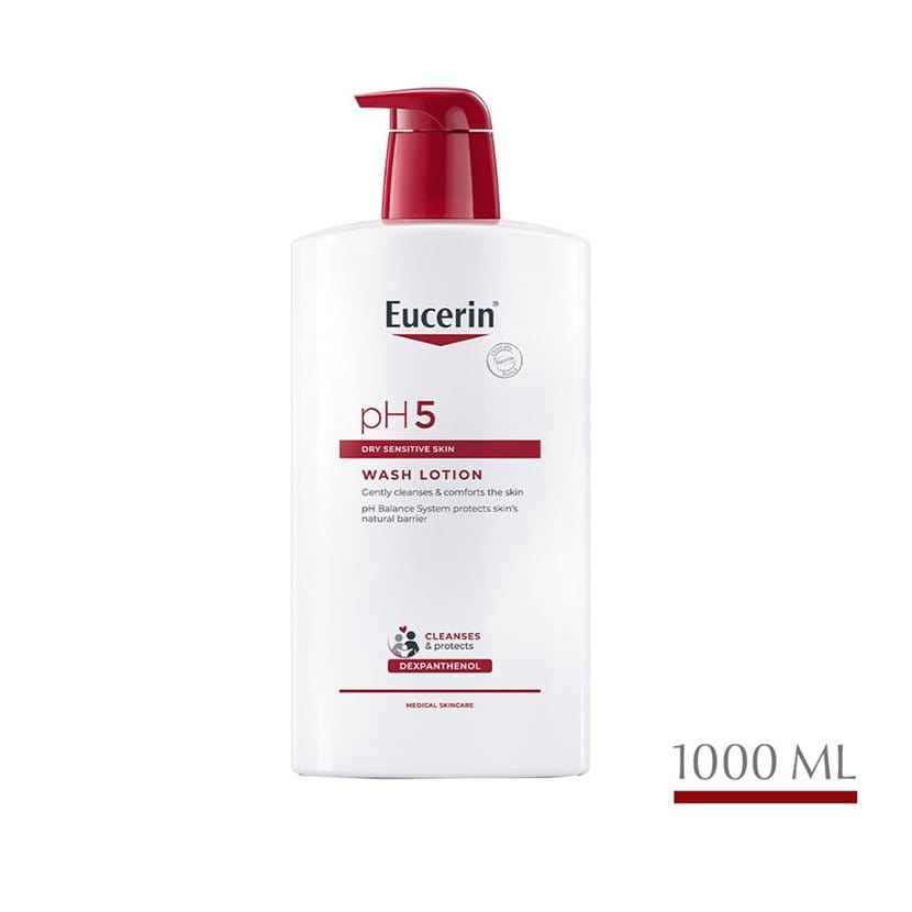 Eucerin pH5 Washlotion is a daily-use face and body cleanser that is free-from alkali soap. Extra-mild surfactants ensure that dry, sensitive skin is gently but effectively cleansed. The unique Eucerin pH Balance System gives the cleanser the optimal pH to protect skin’s natural defenses, to preserve its resilience and prevent it from drying out.